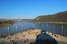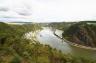 explanation: Loreley is the name of a rock hanging over the Rhine above 120m, where due to a narrowness of the valley and underwater reefs, many shipwrecks happened. The name comes from the old German words "lureln" (murmuring) and "ley" (rock) because of echos provoked by surrounding cliff. The poem of Heinrich Heine, " I cannot explain the sadness", immortalized this rock. The stretch of the Rhine river from Bingen to Koblenz along with medieval castles and vineyards was enlisted into UNESCO's human heritage in 2002.