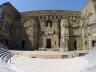 説明:西暦一世紀オーグスタ皇帝の治世に造られ、9000の座席を持つオランジュの劇場は古代ローマの中でも最もよく保存された遺跡の一つです。391年にローマ帝国のキリスト教化に伴い閉鎖され、ゲルマン族の侵入で破壊されました。中世には貧民に不法占拠され1825年に歴史モニュメントの責任者プロスペ・メリメによって再建されました。1981年からユネスコの世界文化遺産に登録され、屋外の催し物が色々行われる。