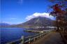 explication: Le lac Chuzenji fut formé par une explosion du Mont Nantai qui vint bloquer la rivière Daiya. Au bord du lac, nous pouvons citer, comme sites intéressants, Therme Chuzenji, Temple moyen de Futaarasan, Tachigi-kannon et le rivage d'Iris. Autour du pont Ojiri, nous pouvons trouver des jetées pour les bateaux de plaisance et de location mais aussi chemins d'excursions bien balisés.