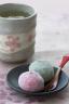 explanation: Japanese confections made with steamed glutinous rice (mochigome), the same ingredient as mochi but is struck for a shorter time. It will then be rolled up to a ball of about 5 cm diameter and covered with "kinako" (sweetened soybean powder) or "an" (sweet bean paste). The first is consumed at the spring equinox and called "botamochi" while the second, at the autumn equinox and called "ohagi". This custom has appeared during Edo period.